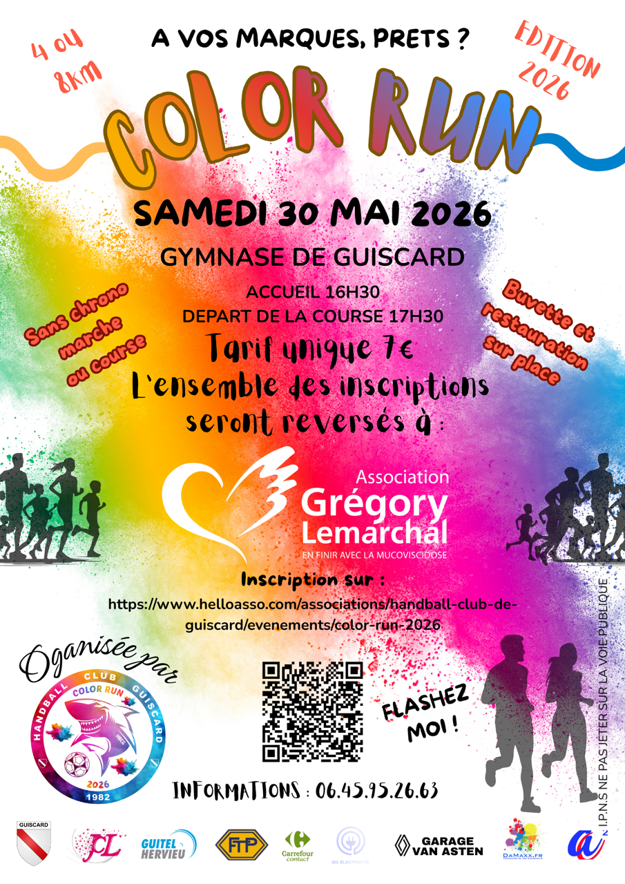 Rendez-vous le samedi 30 mai 2026 au Gymnase de Guiscard pour la Color Run – Édition 2026 !