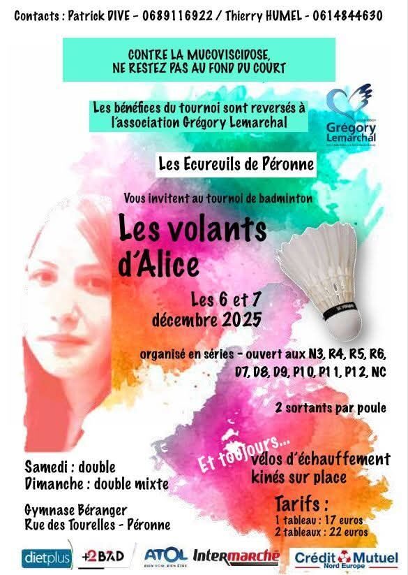 L’Association Grégory Lemarchal et ses bénévoles sont ravis de participer à une nouvelle édition du tournoi “Les Volants d’Alice”, en hommage à Alice Humel.